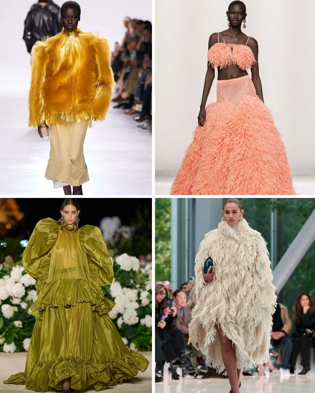 "Texture took centre stage, becoming one of the most compelling ways designers added depth, drama and proportion to otherwise pared-back silhouettes. At Balenciaga, texture appeared everywhere—from mint-green cocktail dresses trimmed with feathers to sculptural skirt silhouettes. Over at Bottega Veneta, Trotter pushed the theme further, presenting elegant outerwear embellished with feathers, bouclé dresses with a uniquely tactile finish and even the house’s now-iconic fibreglass 'fur' coats, which reimagine traditional texture through a modern, innovative lens. The result is a season where touch is as important as sight, and where clothes feel alive with movement, tactility and unexpected detail," notes Who What Wear UK senior shopping editor, Marina Avraam.